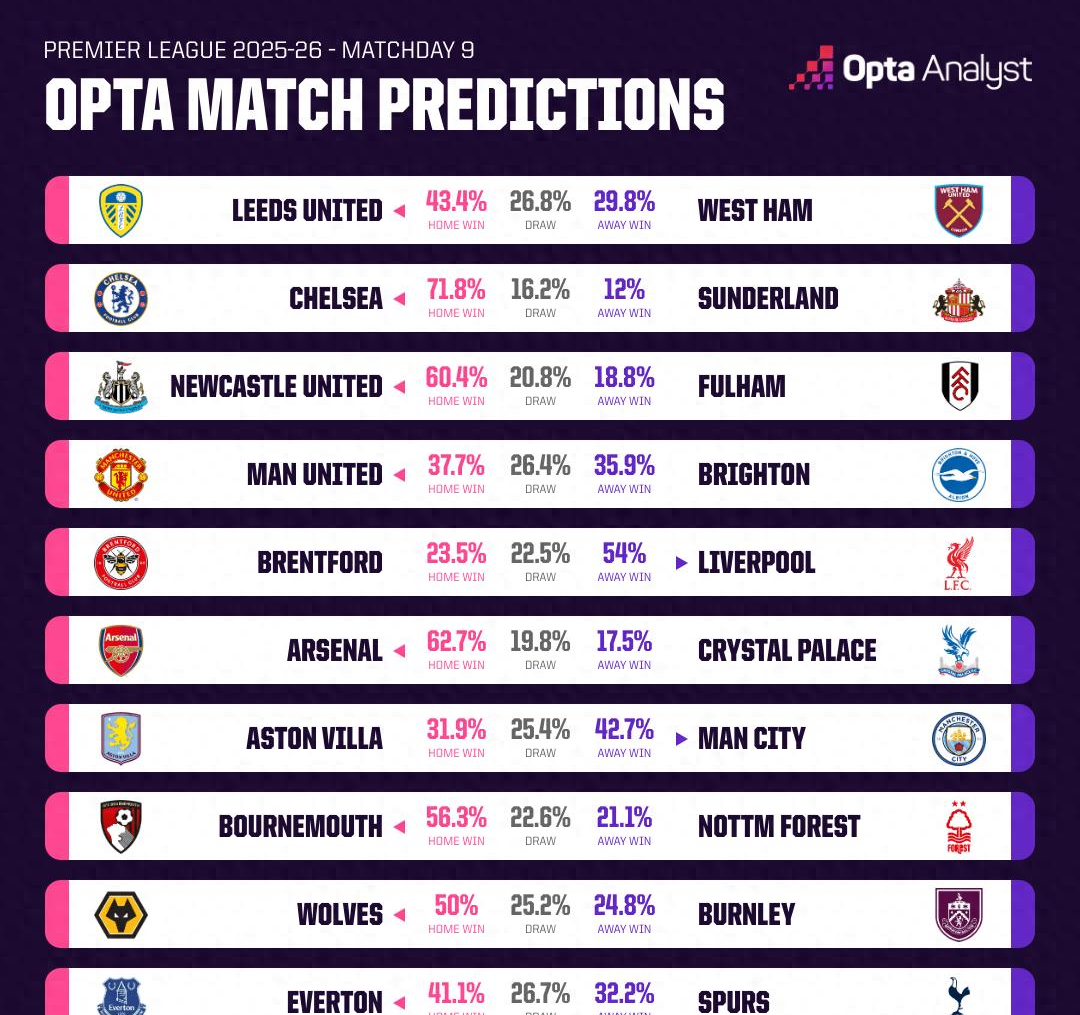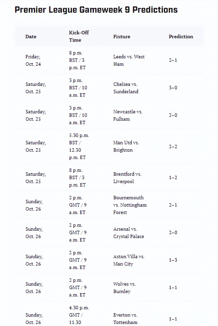就在赛前,Opta和Sports Illustrated FC以及活跃于英超赛场的阿森纳名宿保罗-默森,也分别发布了对于本轮联赛的预测。