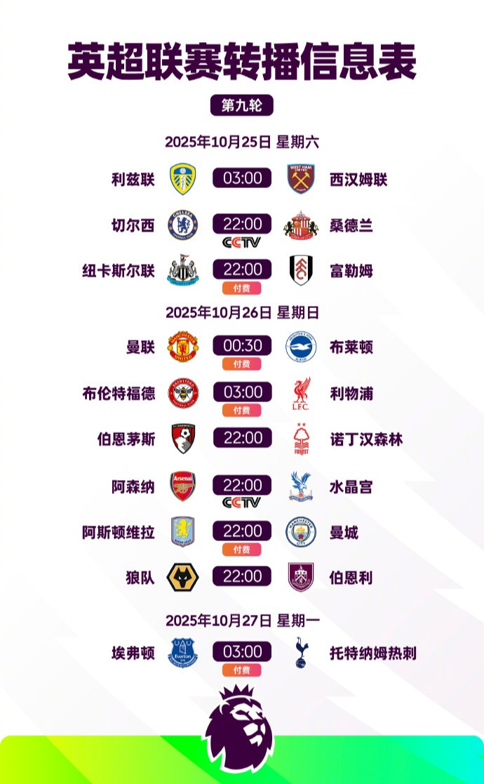 25/26赛季的英超联赛将在本周末迎来联赛第9轮的较量。而在本周玖富智配,则将会上演的是曼联vs布莱顿,阿森纳vs水晶宫以及阿斯顿维拉vs曼城等焦点比赛。