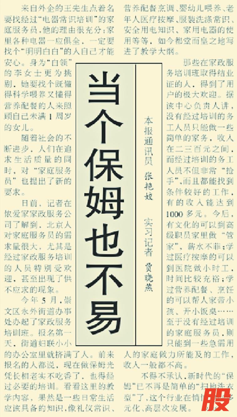 进入上世纪90年代,京城家政服务热起来,也对保姆提出了更高的专业要求。