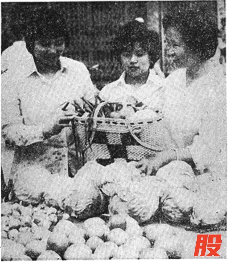 1987年,紫竹院街道工作人员领新来的家庭服务员上街买菜。徐军摄