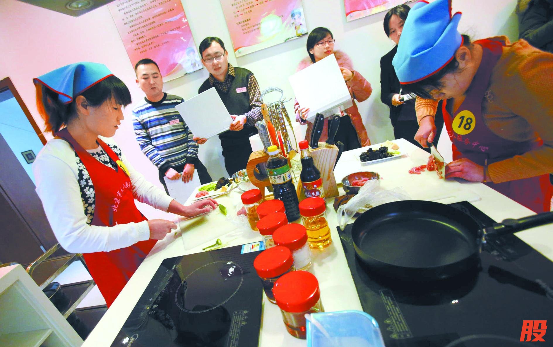 2015年,“北京市家政服务技能大赛”举行。图为家政服务员进行中式烹饪项目的角逐。方非摄