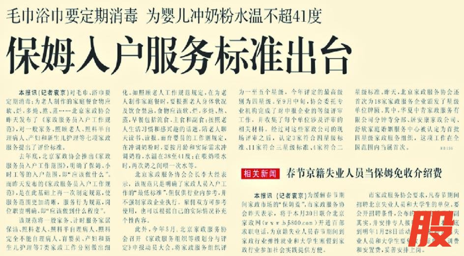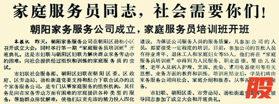 上世纪80年代,北京居民中双职工家庭增多,家务服务需求有了很大增长,而生活水平的提高也令更多家庭有了雇保姆的条件。在这种背景下,北京大力发展家务服务,保姆行业出现了“正规军”——家庭服务员。